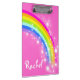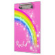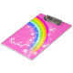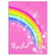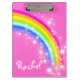 Rainbow colourful graphic kids girls clipboard. Customise with your name. Currently reads Rachel. Uniquely designed by Sarah Trett.