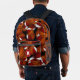 This cool basketball backpack features a random pattern of varied size basketballs turned every which way on a black background - each of the basketballs in the pattern has two recolored panels--one red and one white - customize with the athlete's monogram - by katz_d_zynes