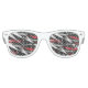 Retro party shades shown with a black, red and white coloured abstract art print