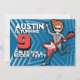Kids rockstar boy 9th birthday blue invitation