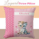 This pink and white pillow has polka dots, stars and a cute leopard, which you can personalize with a name.
