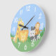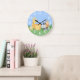 Cartoon design of cute and colourful safari animals consisting of giraffe, lion, zebra and monkey hiding among the tall grass. This adorable clock is a perfect decorative piece to liven a kid's room. Gender neutral for both boys and girls. Designed by Rusty Doodle.
