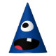 Kids Silly Monster Face Monsters Party Dark Blue or Choice of Colour Party Hats. Customize to change dark blue background to any other colour monster face. One eyed, one toothed silly monster face on the front of this fun hat. Kids monster party themed party supplies and treats.