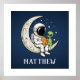 Kid's Space Reading Astronaut and Alien on Moon Poster