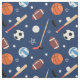 Kids Sports Equipment Pattern on Blue Fabric