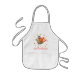Childrens' apron with my artwork of a cute turkey with maple leaves blowing around him. Customizable text says "Happy Thanksgiving!"