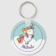 Kids keychain featuring a cute unicorn standing on a cloud with a blue background.