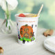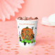 Fun Halloween party cups for a kids Halloween party features a large pumpkin gnome home and two gnomes standing on either side of it. There's a black cat and black spiders too. It says "Have a SPOOKY Halloween" at the top and the design appears on both sides. This design is also featured on an entire party supply collection so be sure to take a look at all the fun items to have a fully coordinated Halloween party!