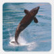 Killer whale (Orcinus orca) jumping out of blue water viewed from back