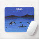 An acrylic painting of a pod of orca under a starry, evening sky.