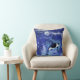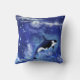 Killer Whales on Full Moon - Art Drawing - Blue Throw Pillow