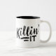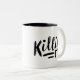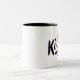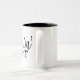This bold, black and white coffee cup features unique lettering and a fun message.