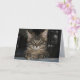 This birthday card features our grey striped Siberian cat, Kimber, making the most hilarious face. His paws are together in front of him as he peeks over the edge of the couch with his ears back and his lips pinched up. This birthday card brings a wish for a happy birthday and a smile to everyone.