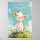 Kind Brave Happy Cute Goat Personalized Name Kids Baby Nursery Poster features a cute happy goat in a meadow among the flowers with the text "be kind, be brave, be happy" and personalized with your name in modern white typography script. Perfect nursery decor with bold cute art. Created by Evco Studio www.zazzle.com/store/evcostudio