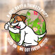 Window sticker decal with 'A HOT DAY? A THIRTY PUP? HOLD ON - WE GOT FRESH WATER!' quote text. Let dog owners know you have a bowl of fresh cool water for their dog on your sidewalk, patio, or inside your establishment, on hot sunny days.