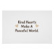 A gentle inspirational message with soft heart icons celebrating compassion, kindness, and the power of love to create peace.
