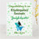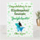 Cute adorable and modern congratulation card for kindergarten graduates. The design features a cute green blue dinosaur T-Rex with a dot/polka background the template is customizable with graduate name, year class,personal title. Perfect for kids/ grandson/ son kindergarten graduation, specially if the kids loves animals and particularly reptiles dinosaurs and T-Rex, they will love it!