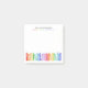 For the school teacher. Brighten everyday classroom tasks with these personalized teacher Post‑it notes, designed with a clean name header, cheerful rainbow dots, and a charming row of illustrated books. These post it notes are a lovely way to jot quick reminders, label student work, organize lessons, or leave encouraging notes throughout the day. Perfect for kindergarten, elementary, reading specialists, and librarians, these sticky notes add a warm, book‑loving touch to any desk. They also make a thoughtful, practical gift for Teacher Appreciation Week, end‑of‑year celebrations, holiday gifting, or from students and parents who want to give something personal and genuinely useful. With their colorful, boutique feel and everyday functionality, these Post‑its become a small joy teachers reach for again and again. Personalize with the inclusion of a name.