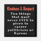 Funny and simple but true - "Kindness & Respect...Two things that must never EVER be given to career politicians or Karens"