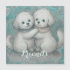 This is a soft illustration of two fluffy dogs sitting close together in blended, warm pastel colors denoting friendship and love.