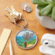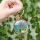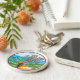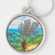 A landscape and elk painting within a circle border frame. This mighty elk has grown trees as antlers. He stands tall watching over his forest of hills and bodies of water.