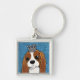 Cute dog art keychain. Artwork features a cute brown and white King Charles Spaniel wearing a crown against a blue background. Unique gift for dog lovers. Copyright © Lisa Marie Robinson All rights reserved. It is illegal to use or duplicate this, or any of our images, without written permission.