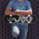 Silver king cobra with crown is set on a black background. This silver snake makes a unique skateboard.