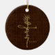 Share the wonder of Christ's miraculous birth as newborn Saviour King with this eye-catching, Christian Christmas ornament in bronze and gold. It's elegant minimalist design pays homage to the earthly and heavenly Kingship of Jesus over His people. The hand-lettered name of Jesus forms the shape of a cross upon which sits two crowns representing Christ's sacrificial death and resurrected eternal rule over those who believe--the purpose for which He was born! At the base of the stylistic cross is the bible address John 18:37 which recounts Christ's declaration before Pontius Pilate of the redemptive connection between His Kingship and nativity. The backside of this lovely ornament displays the full scripture verse and allows for customization, if desired.