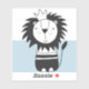 Cute Nordic style illustration of a lion king - black and white with white and blue colorblock background