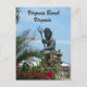 Close up view of the statue of King Neptune at Virginia Beach's, Neptune Park, with beach scene surrounding. Words read: "Virginia Beach, Virginia" Great souvenir!