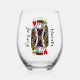 King of Hearts Design Stemless Wine Glass with customizable text on both sides.