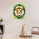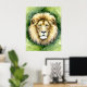 This vibrant watercolor painting captures the majestic face of a lion with exquisite detail and rich natural colours. The lion exhibits a strong yet serene gaze, surrounded by shades of green that evoke depth and majesty. This painting embodies the strength and dignity of these regal creatures in nature, perfect for any wildlife enthusiast and art lover.