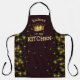 King of the Kitchen apron with a gold crown and stars on a black background. Create a gift set by adding a matching kitchen towel, mug, or other items.