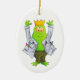 This geeky frog is the king of his lab and is all dressed up in brown pants and a white lab coat, complete with pens, notebooks, and rulers. His eyes are a little blood-shot from staring into his microscope and computer for so long, but it looks like he's finally had some kind of revelation after many hours of painstaking work. A great gift for anyone involved in scientific, forensic, or medical research or a student who dreams to become the next king of the lab! Don't forget that the reverse of this ornament can be printed with your customized message when you select the orange button on the product page.