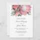 Beautifully elegant and a popular choice in wedding flowers, this unique wedding invitation design features a watercolor floral arrangement of exotic King Protea flowers and buds. Colours include light and dark pink, burgundy, teal and silver grey. Edit the sample text with your wedding details.