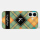 Plaid design in kingfisher palette colours. Seamless pattern. Custom text and monogram.