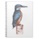 Kingfishers are gorgeous creatures. A fine specimen perched on a rusty post was painted in various hues of blue, back and brown watercolor. This unique notebook is perfect for the nature enthusiast or bird watcher.