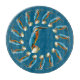 An enchanting depiction of a circle of beautiful Kingfisher birds, with glorious orange, blue and white plumage, set against a deep blue background.