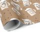 KiniArt coffee lover gift wrap with mugs, whip cream, coffee beans, hearts, birds and a Westie dog by Contemporary PUP Artist, Kim Niles. ©️ Kim Niles, KiniArt™️ - All Rights Reserved.