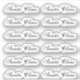 This sheet holds a dozen custom contoured Santa Claus signature stickers in an "English Vivace" font.