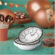 This paper bowl features a black clock with Roman numerals on a white background. Around the edge of the plate is a black border with gold stars. The interior of the clock says "Kiss me at Midnight." Perfect for New Years Eve or any other formal gathering.