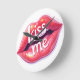 Kiss Me Glossy Red Lips Art Illustration Round Clock