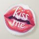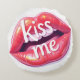 Kiss Me Glossy Red Lips Art Illustration Round Pillow