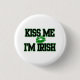 Kiss Me, I'm Irish button with white background and pouty lipstick kissing lips.
