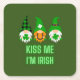 Kiss Me I'm Irish St. Patrick's Day Gnome Shamrock Square Paper Coaster