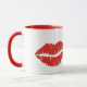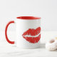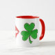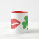 Mug features an original Saint Patrick's Day illustration of a green shamrock and a bright red lipstick kiss print.