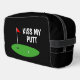 Kiss My Putt funny toiletry travel bag for golfer. Personalized golf gifts for him or her. Black or custom colour. Funny design with putting green, flag and ball.