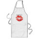 Long White Apron designed to Kiss The Cook with red lips.