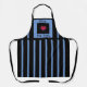 This apron would make a wonderful gift for friends or family. The design has black and blue vertical stripes, a red heart, and a text template that allows you to make changes.