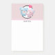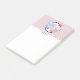 Large portrait sized post-it notes with a cute cartoon image of a bear couple, the she bear is pastel pink with a little bow and she is kissing the cheek of a blue bear who looks positively delighted. A little pink heart is floating above their heads. Very cute and kawaii. A pattern which is a muted pink colour with white polka dots along the top border.